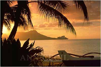 ![]() The Hawaiian Islands: Oahu 379 - Waikiki-Diamond Head Sunrise, Canoe "Diamond Head Sunrise With Canoe At Waikiki" |