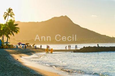 ![]() The Hawaiian Islands: Oahu 3083 - Morning On Waikiki Beach "Visitors on Waikiki Beach early in the morning fronting the Reef Hotel with Diamond Head in the background" |